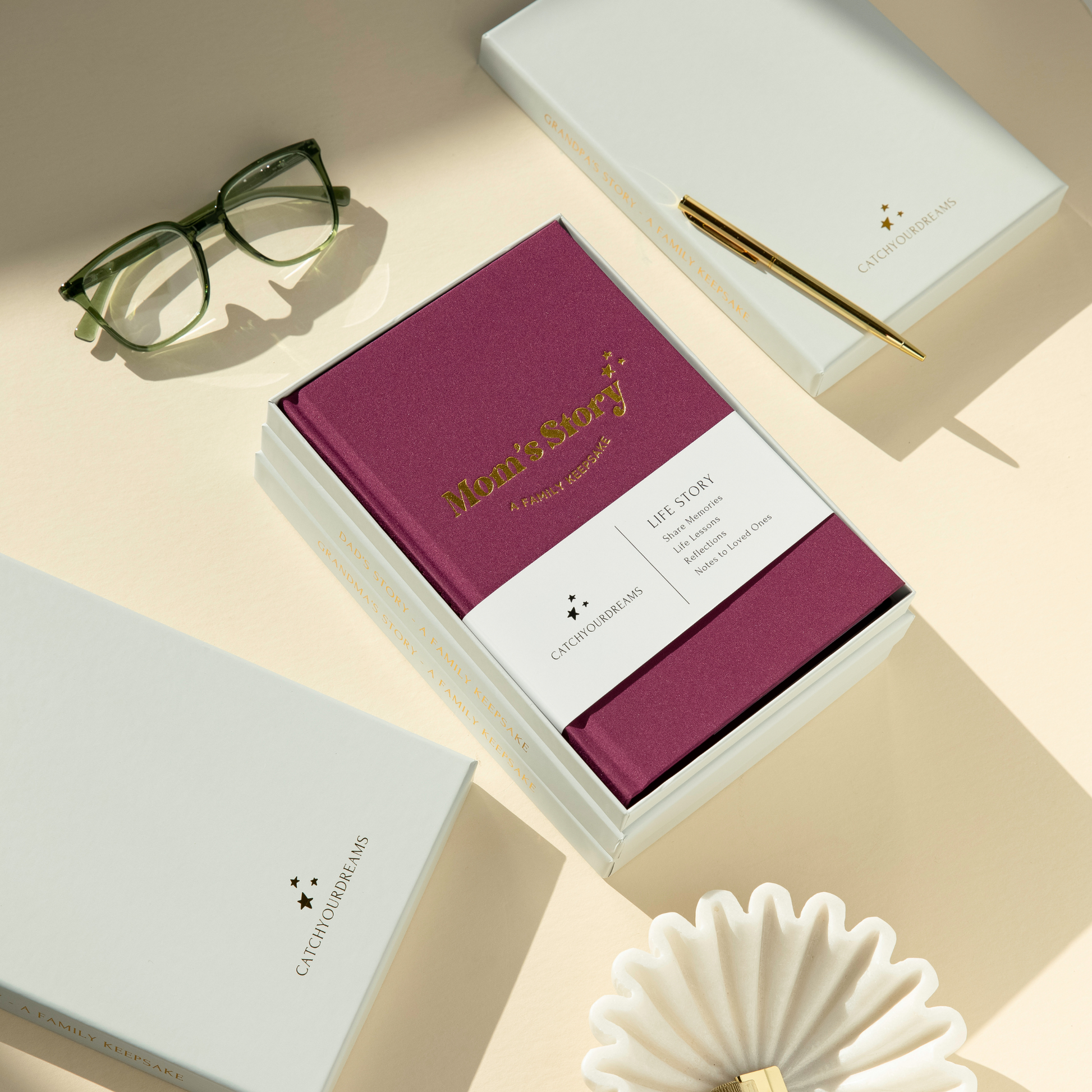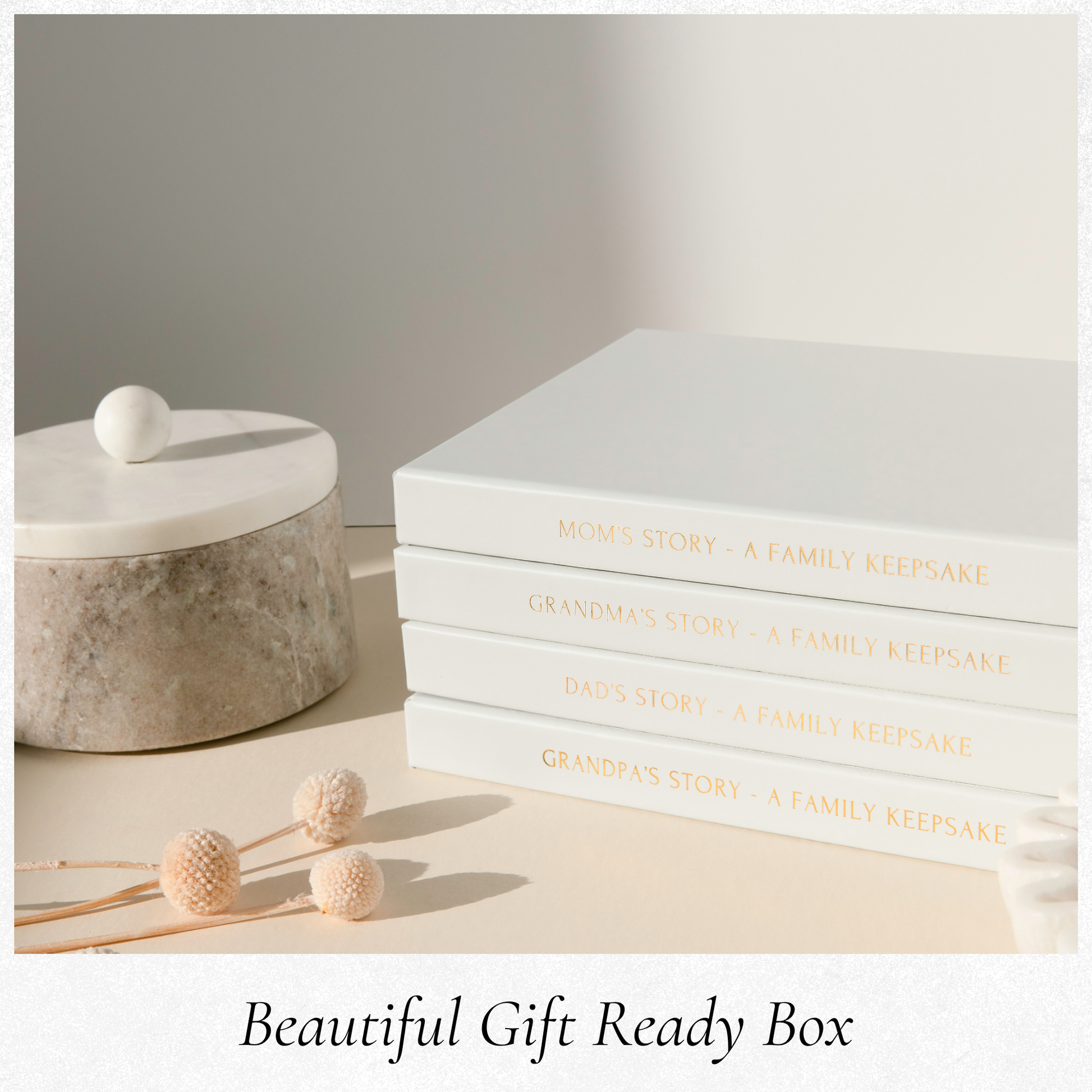 Capture a lifetime of memories with Mom’s Story — a beautifully designed guided journal that helps mothers record their life story, wisdom, and cherished moments for future generations.